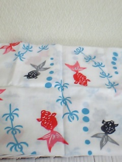 買い物ともらい物とで、家の中に一気に金魚柄のものが増えた。